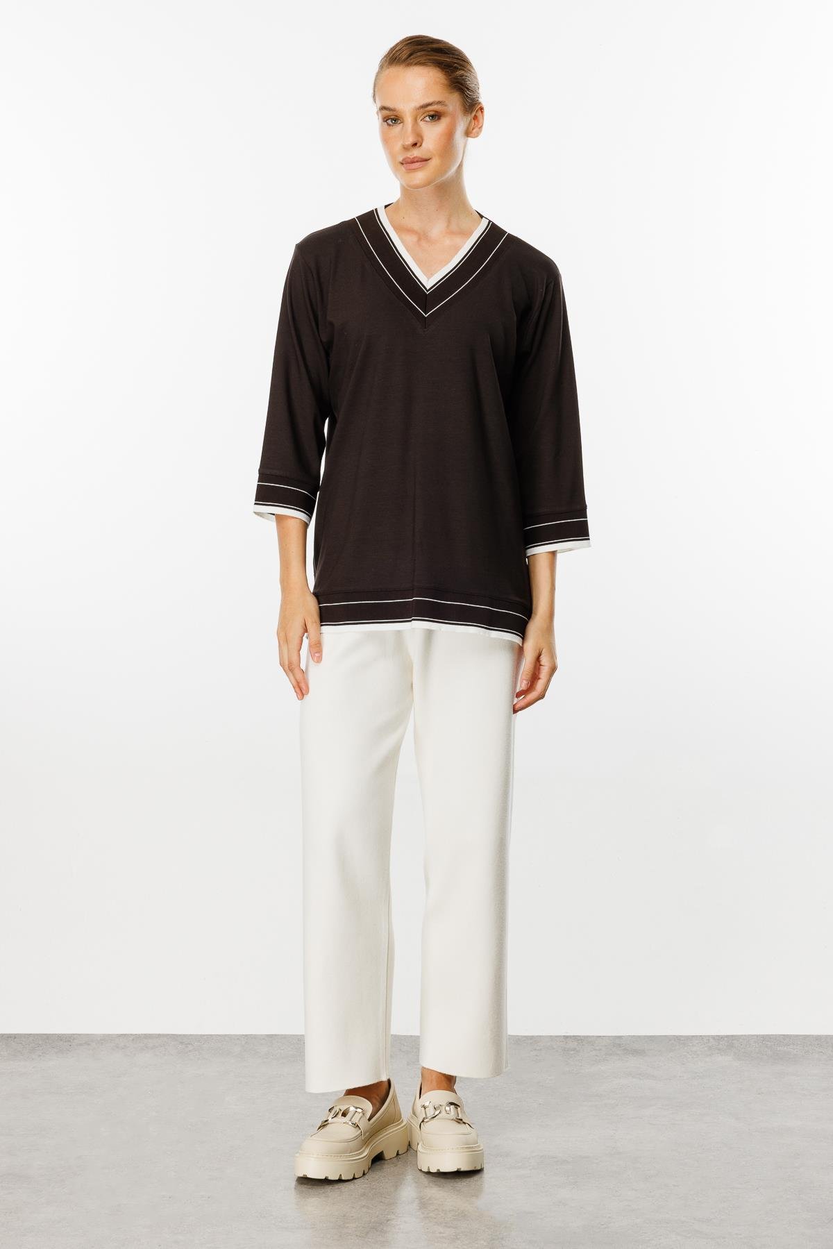 Mutlu Ertan Kadın V Yaka Ribanalı Örme Bluz Siyah 30326 Mutlu Ertan Kadın V Yaka Ribanalı Örme Bluz Kahve 30326