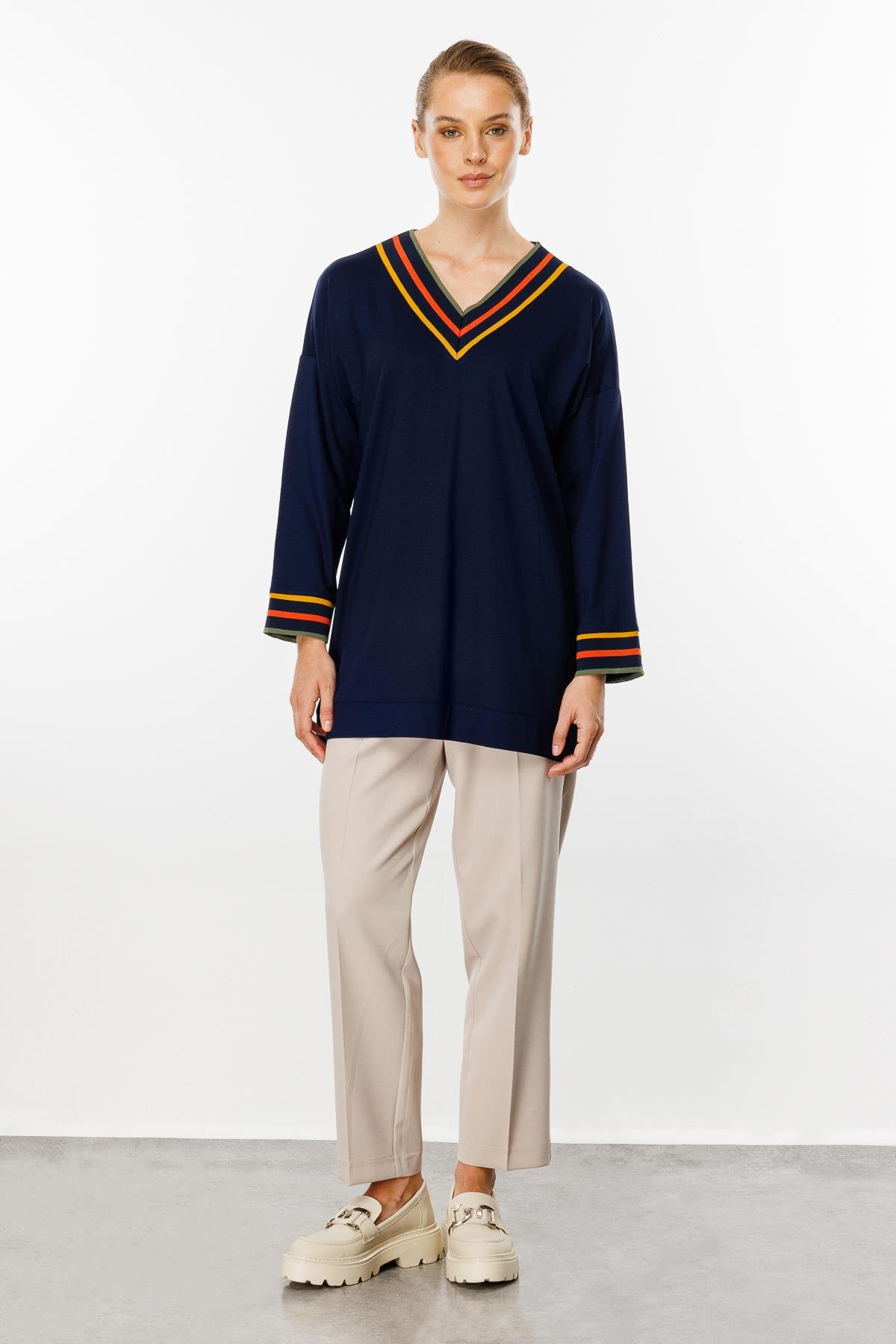 Mutlu Ertan Kadın V Yaka Ribanalı Bluz Lacivert 30224