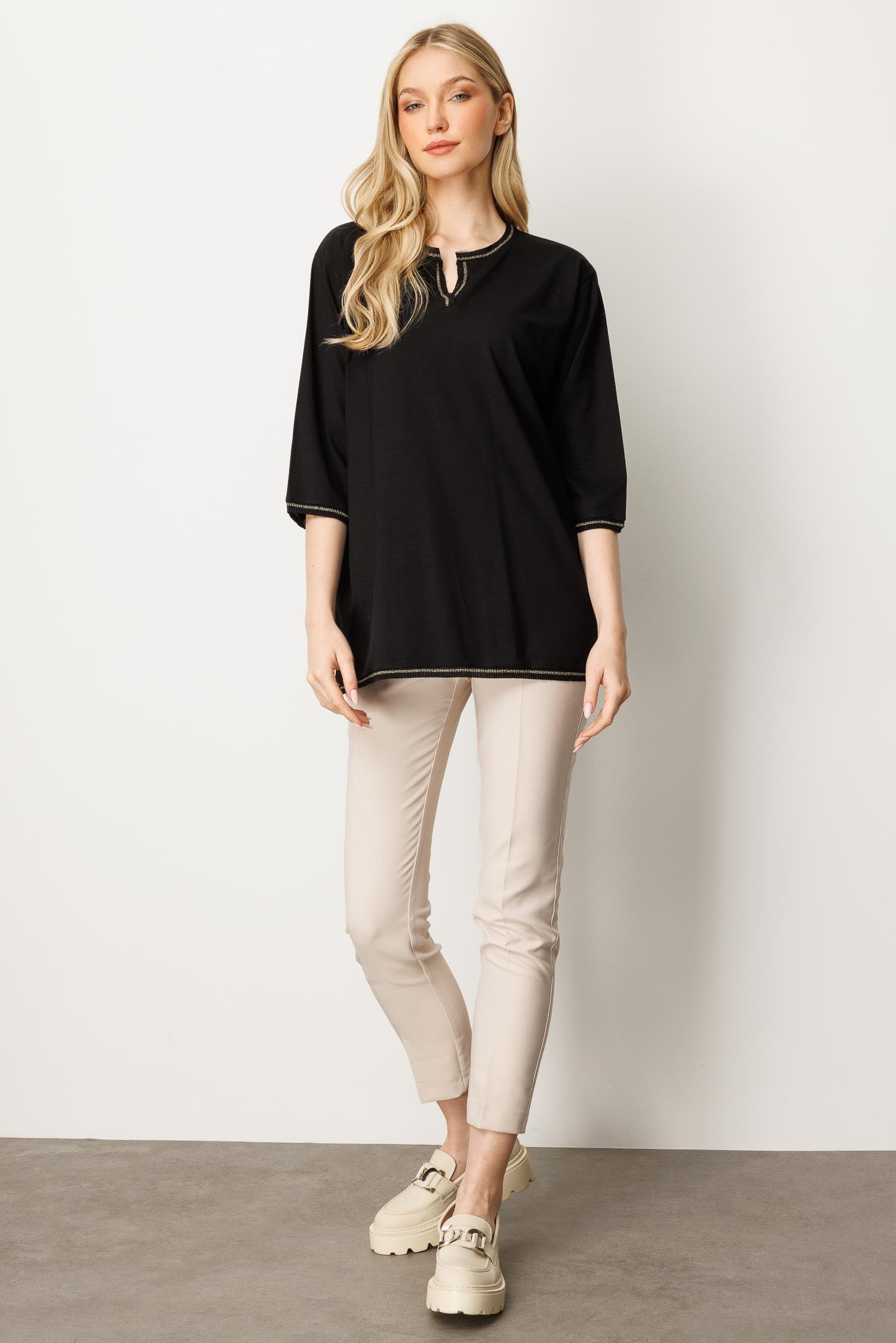 Mutlu Ertan Kadın V Yaka Ribanalı Bluz Siyah 30402