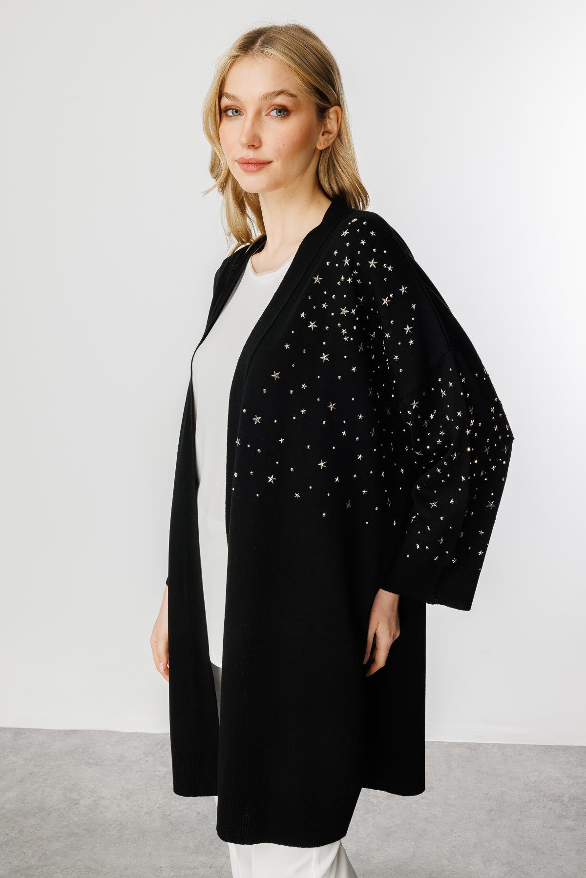 Mutlu Ertan Kadın Yıldız Taş Detaylı Triko Hırka Siyah 20182 (20182)