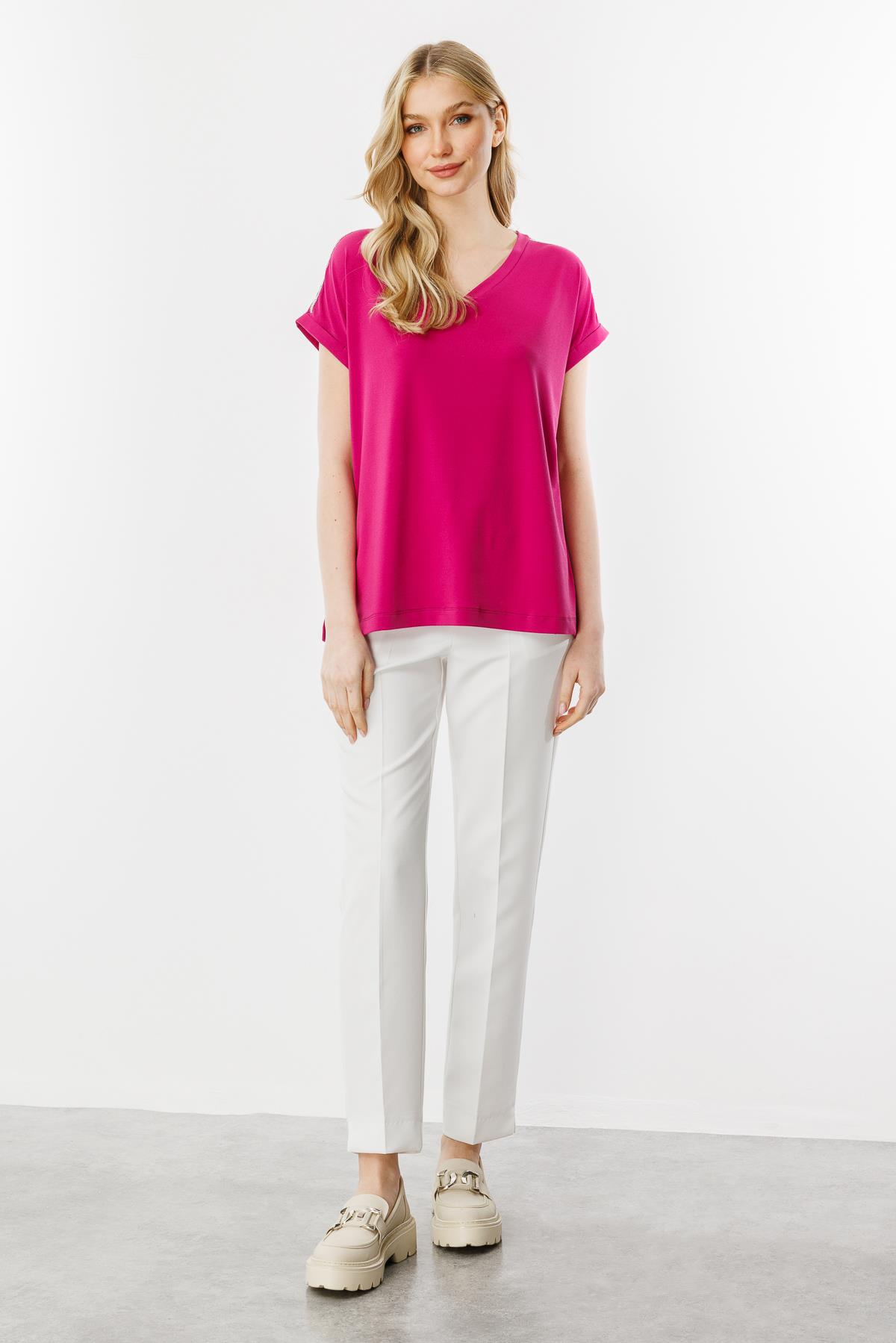 Mutlu Ertan Kadın Zincir Detaylı V Yaka Bluz Fuşya 30345 (30345)