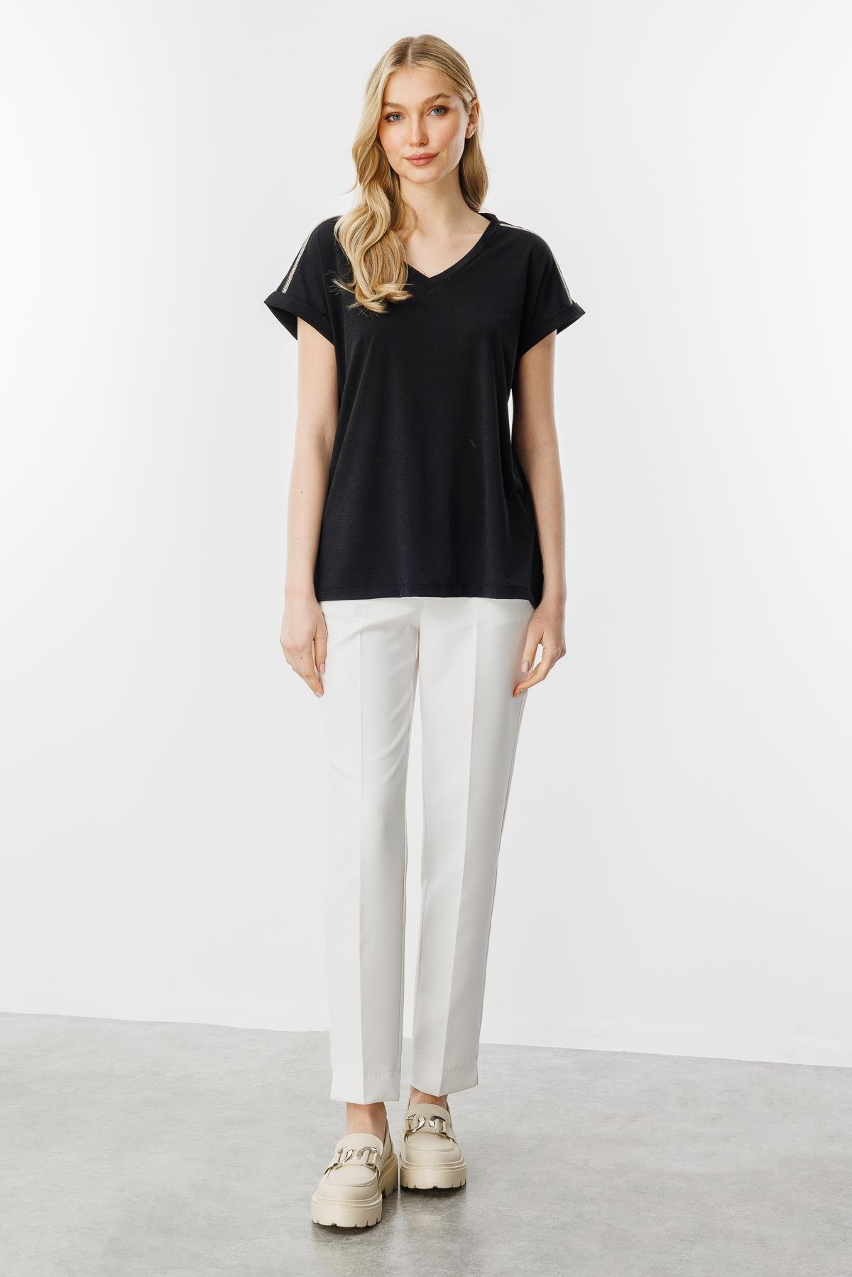 Mutlu Ertan Kadın Zincir Detaylı V Yaka Bluz Siyah 30345 (30345)
